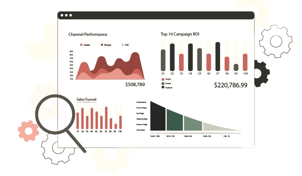Monitor key metrics on product, sales, order fulfilment, aquisition costs and more via live dashboards.